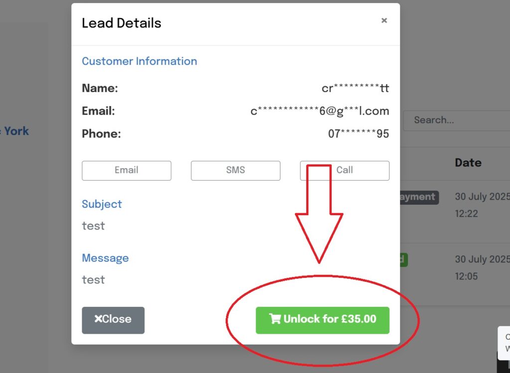 • Once the lead has been accepted all the customer details will be realised to you, enquire details will be in full view pre acceptant to allow your self to make an informed decision on whether to accept the Lead or not.