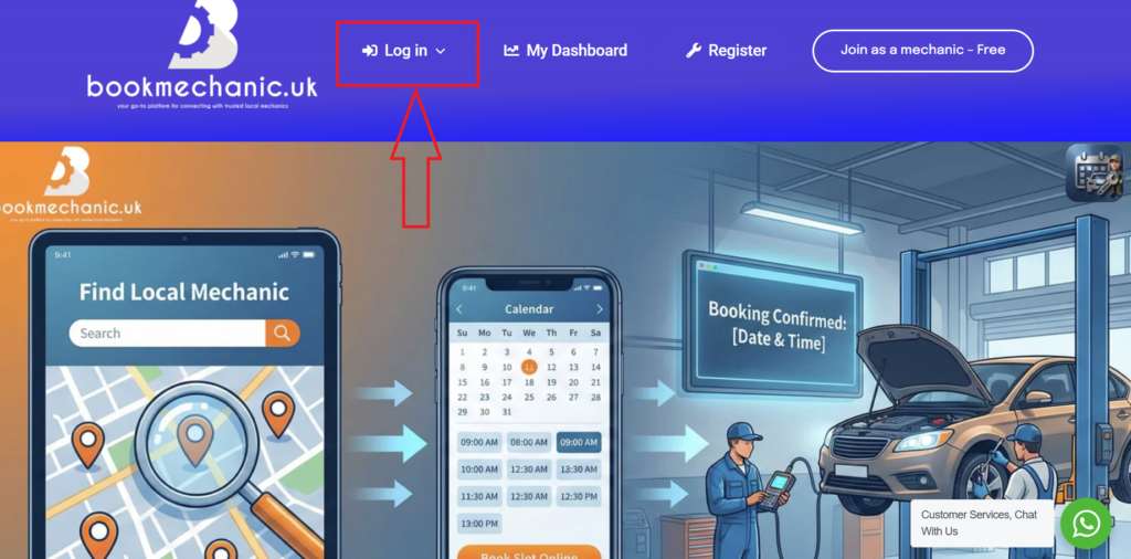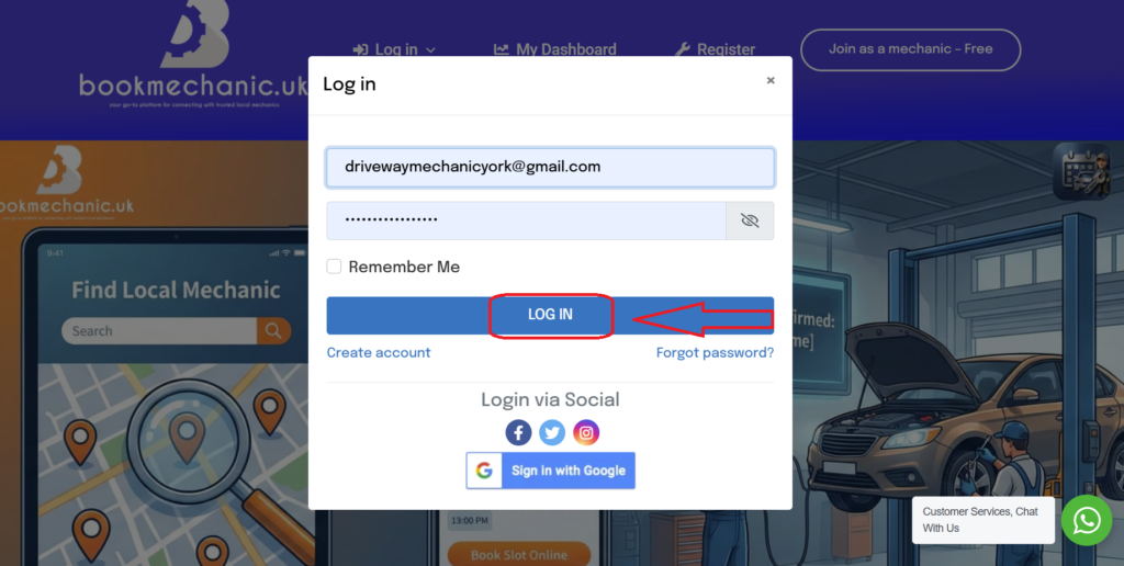 • When the light box appears entre your mechanic username, password then press “Login”.