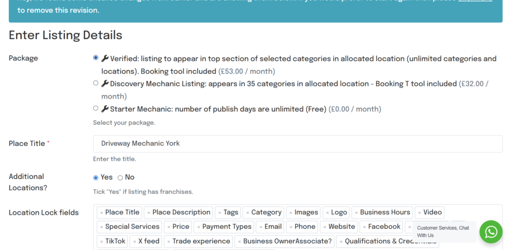 • This will direct you to the “Enter Listing Details” page, from here all content inside your listing apart from your appointment tool can be changed.