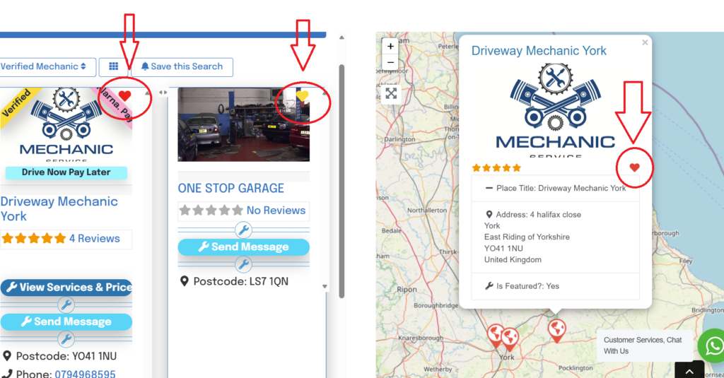 Once you’ve found a mechanic you like, it’s often useful to save their details for future bookings.