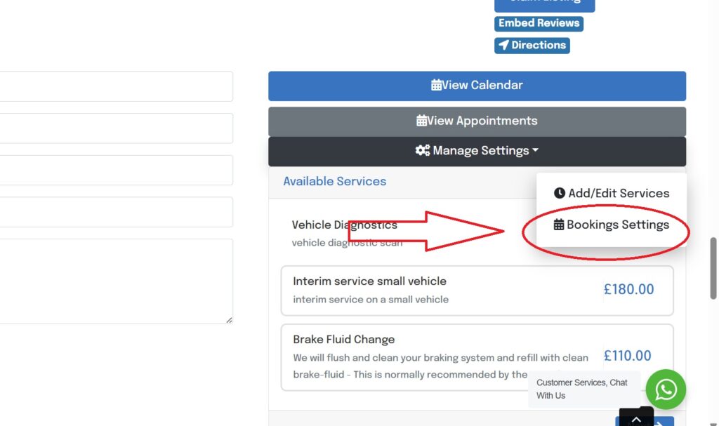 Now head over to “Bookings Settings” in the dropdown menu for “Manage Settings”. Manage settings > Bookings settings