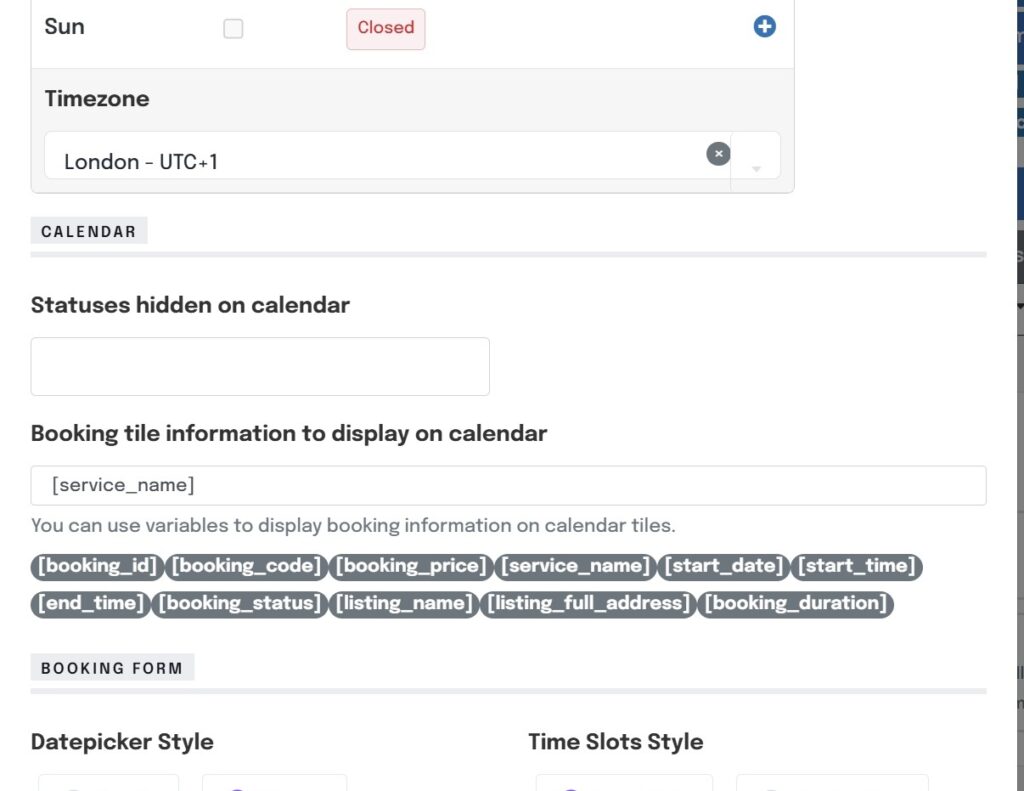 Booking Form – Adjust the 6 options below to suit your preference, you can always come back later and play around with different features.