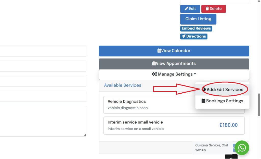Head down to the bottom right hand side of the page and select the drop down menu “Manage Settings” and select “Add/Edit Services”. Manage settings > Add/edit Services